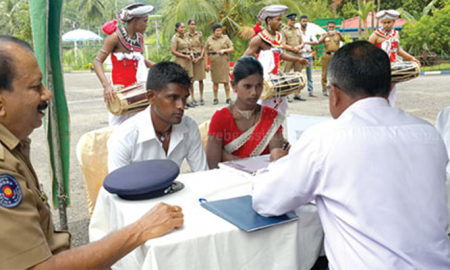 හිනිදුම පොලිස් ස්ථානයේ ඉදිරිපස අංගණයක විවිධ වර්ණ මඩු කූඩාරම්වලින්ද ස්වර්ණ වර්ණ ඇතිරිලි යෙදූ මේස පුටු මල්පොකුරු ආදියෙන්ද අලංකෘතව තිබිණ. සිනාවෙන් මුහුණ හැඩකරගත්...