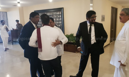 ශ්රී ලංකා නිදහස් පක්ෂය නියෝජනය කරනු ලබන අමාත්ය ඒ.එච්.එම්. ෆවුසි, අමාත්ය පියසේන ගමගේ සහ පාර්ලිමේන්තු මන්ත්රි මනුෂ නානායක්කාර පාර්ලිමේන්තුව රැස්වූ අවස්ථාවේදී විපක්ෂයේ...